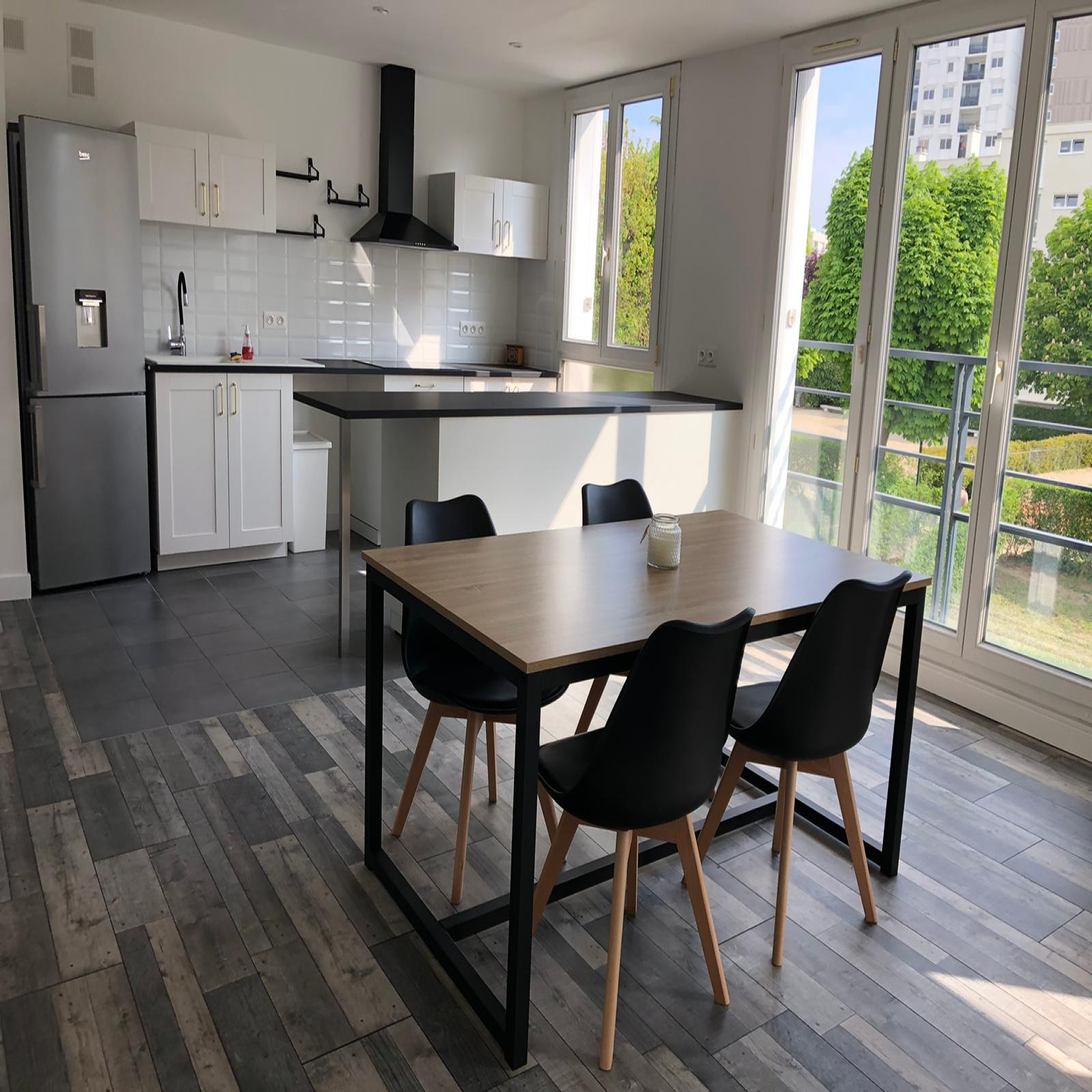 Location meublée ! Quartier Les Peintres - Situé dans une résidence familiale et verdoyante, au 1er étage, magnifique 4 pièces de 73.3m², lumineux et ENTIEREMENT REFAIT A NEUF, comprenant : entrée avec rangements, DOUBLE SEJOUR avec cuisine américaine équipée d'environ 38m², DEUX CHAMBRES, deux dressings, salle d'eau avec cellier et WC séparé. Chauffage inclus dans les charges. A SAISIR !