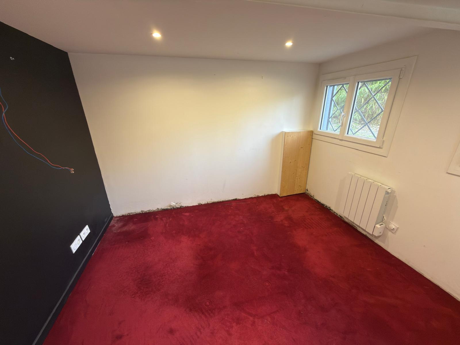 Au rez-de-chaussée : une entrée, un séjour, une cuisine semi-équipée, deux chambres, un bureau, une salle d’eau, WC séparés.