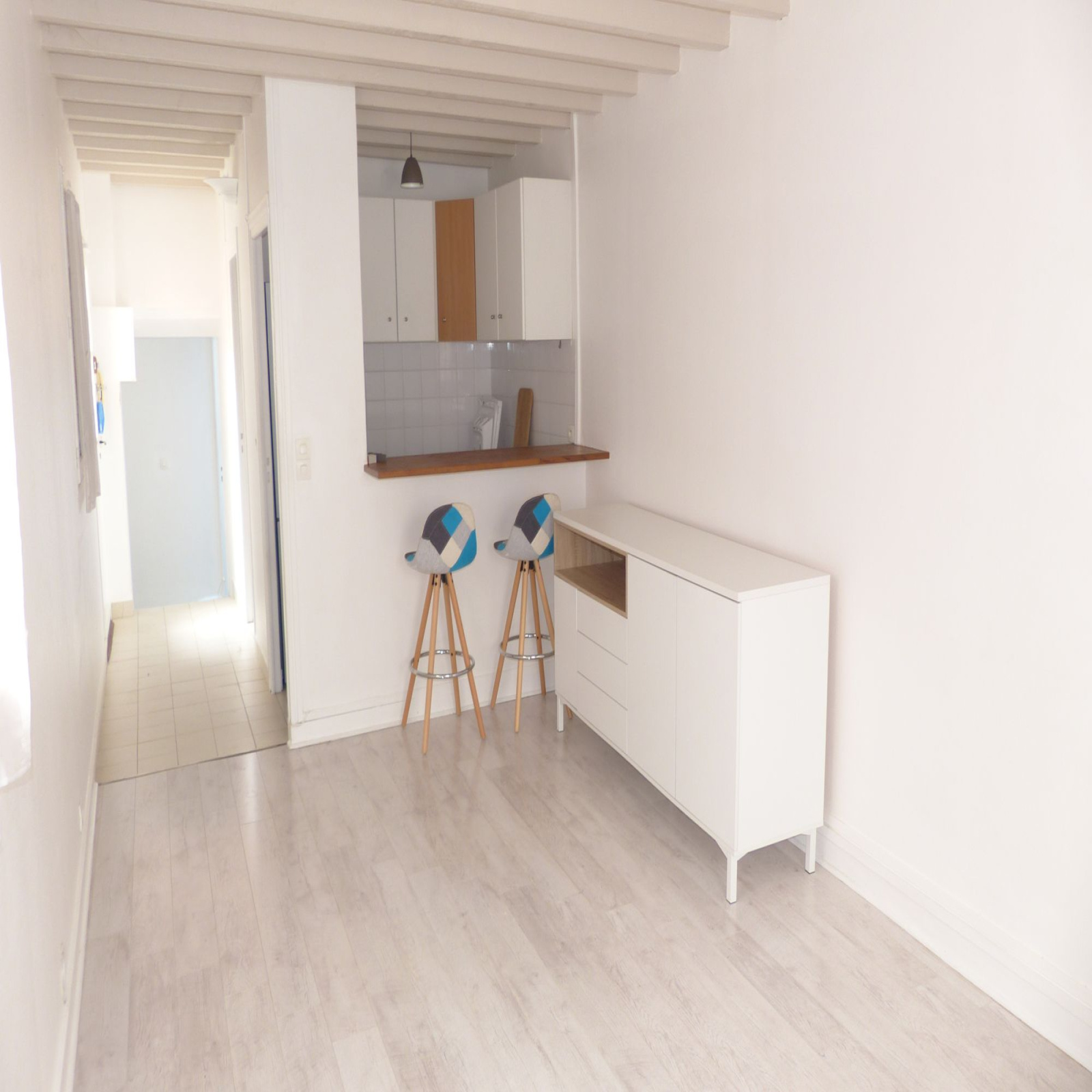COEUR CENTRE VILLE - Situé à proximité immédiate de toutes commodités, dans une petite copropriété de 11 lots, appartement 3 pièces de 45.65m² en rez-de-jardin avec entrée individuelle par une cour privative, comprenant : entrée, séjour, petite cuisine aménagée, deux chambres et salle de bains avec WC. Bon état général.